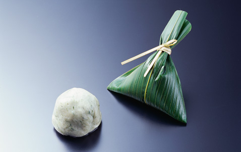 - 生地によもぎを混ぜ込みこしあんを使用し、笹で巻いています。